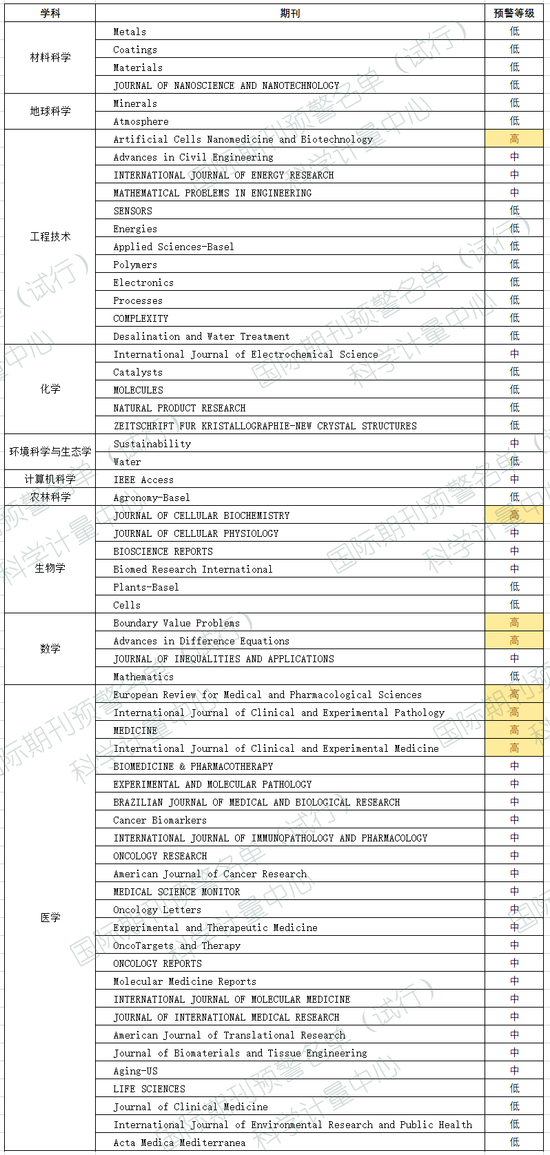 具体而言,就是通过综合评判期刊载文量、作者国际化程度、拒稿率、论文处理费(APC)、期刊超越指数、自引率、撤稿信息等,找出那些具备风险特征、具有潜在质量问题的学术期刊。最后,依据各刊数据差异,将预警级别分为高、中、低三档,风险指数依次减弱。