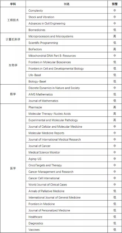 预警期刊分为高、中、低三个等级,各等级关注问题侧重不一,预警风险依次减弱。高风险预警旨在抑制学术不端问题:批量论文涉及“论文工厂”;中风险预警旨在促进我国学术成果的国际传播和优化我国科研经费的使用:期刊作者群和读者群的国际化程度低,以及论文处理费不合理;低风险预警旨在提醒科学家,期刊存在学术影响力骤降风险:大体量期刊发文量激增。
