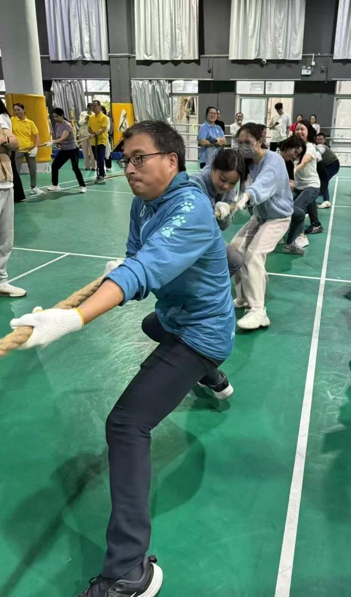 2024年11月19日,广东财经大学教职工拔河比赛火热举行。科研分工会面临队员临时缺阵的困境,仍坚持参赛,以“全员拼到底”的斗志展现团队精神。
